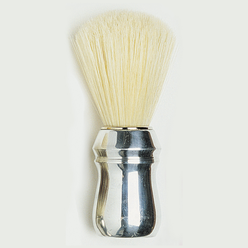 Shaving brush with chromed plastic handle.
